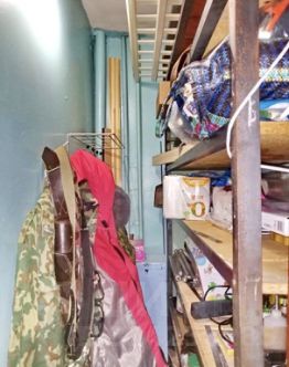 Большая лоджия 3,1 кв.м. с видам на частный сектор, сделаны дополнительные полочки для хранения...