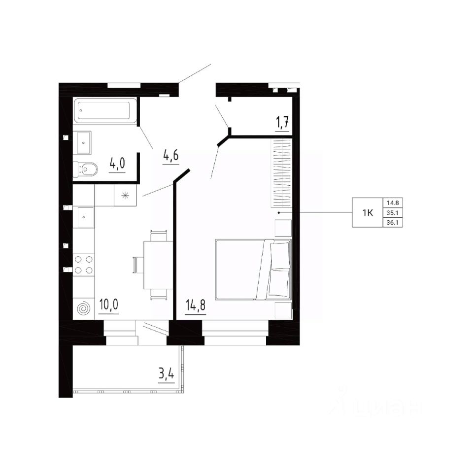 Общая площадь36,1 м²