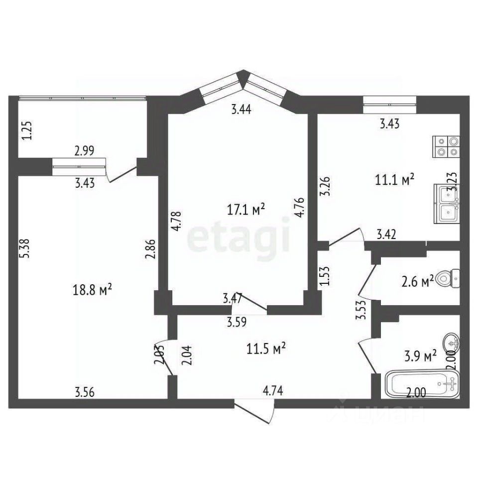 11,1 м²