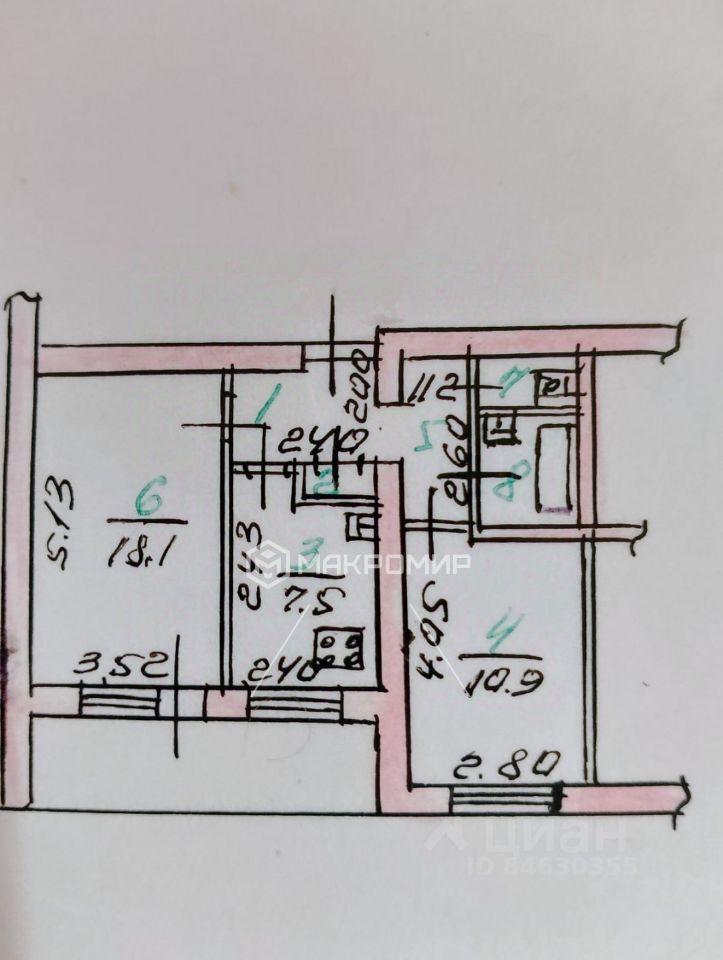 Арт. 116961787 В продаже двухкомнатная квартира в кирпичном доме в Советском районе города Орёл.