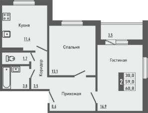 Продаётся 2-комнатная квартира в строящемся доме (корпус 3 (поз.32)), срок сдачи: III-кв. 2026, общей площадью 60.8 кв.м., на 16 этаже. Новый жилой комплекс "Зеленый квартал" от застройщика "Орелстрой" расположен по адресу Орловский муниципальный округ, деревня Жилина, улица Генерала Лаврова.