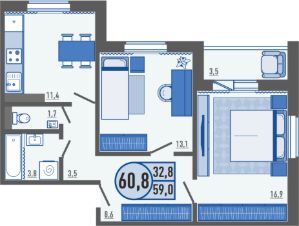 Продаётся 2-комнатная квартира в строящемся доме (1 этап (поз.69)), срок сдачи: III-кв. 2026, общей площадью 60.8 кв.м., на 12 этаже. С одной стороны жилой комплекс погрузит вас в тихую размеренную атмосферу, а с другой даст возможность насладиться динамичностью квартала со всей его развитой образовательной инфраструктурой.
