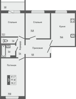 Продаётся 3-комнатная квартира в строящемся доме (корпус 3 (поз.32)), срок сдачи: III-кв. 2026, общей площадью 79.7 кв.м., на 6 этаже. Новый жилой комплекс "Зеленый квартал" от застройщика "Орелстрой" расположен по адресу Орловский муниципальный округ, деревня Жилина, улица Генерала Лаврова.