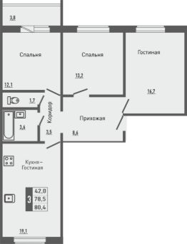 Продаётся 3-комнатная квартира в строящемся доме (корпус 3 (поз.32)), срок сдачи: III-кв. 2026, общей площадью 80.4 кв.м., на 11 этаже. Новый жилой комплекс "Зеленый квартал" от застройщика "Орелстрой" расположен по адресу Орловский муниципальный округ, деревня Жилина, улица Генерала Лаврова.
