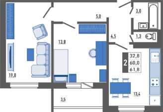 Продаётся 2-комнатная квартира в строящемся доме (Корпус 1), срок сдачи: II-кв. 2028, общей площадью 61.8 кв.м., на 3 этаже. Новый жилой комплекс "Поколения" от застройщика "ОДСК" расположен по адресу Орловская область, Город Орёл, Улица Льва Толстого.