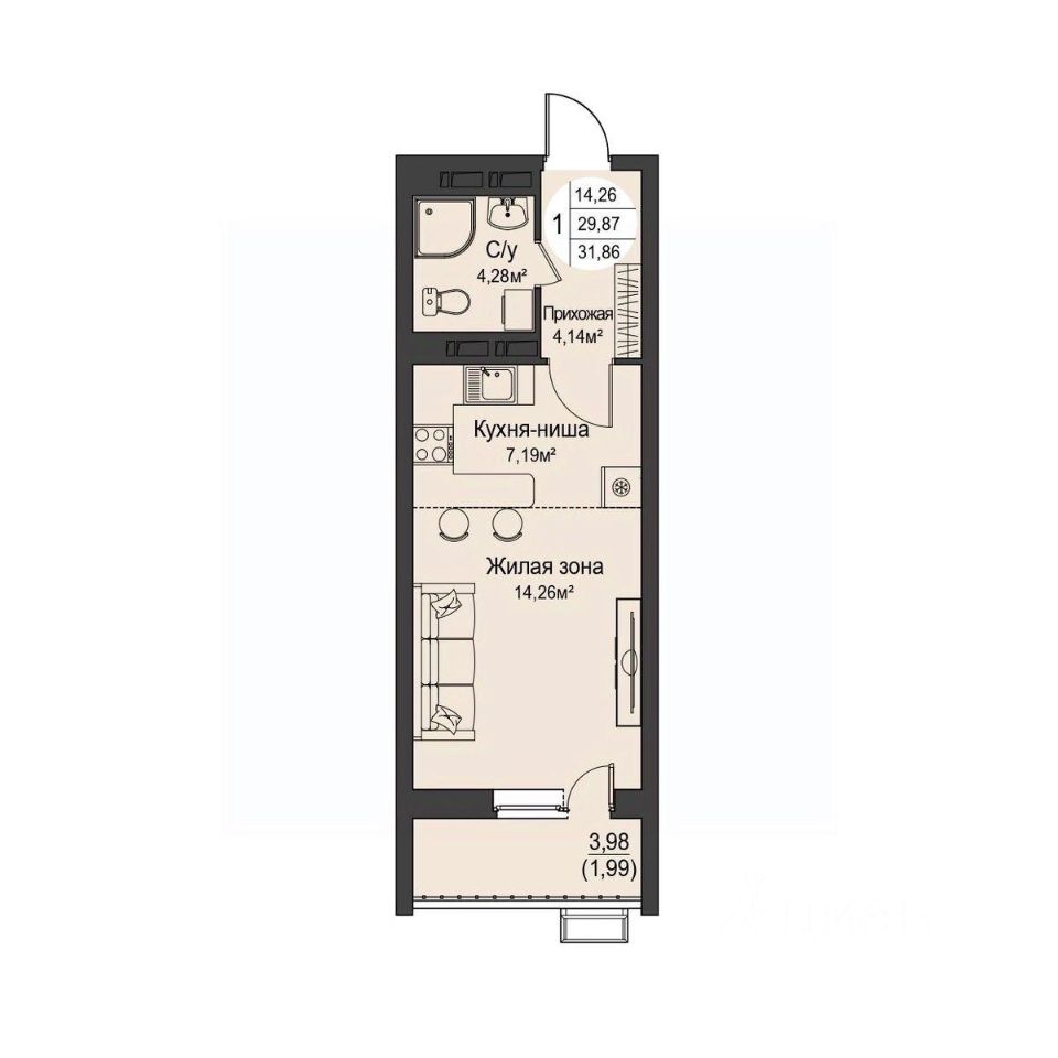 Общая площадь31,86 м²