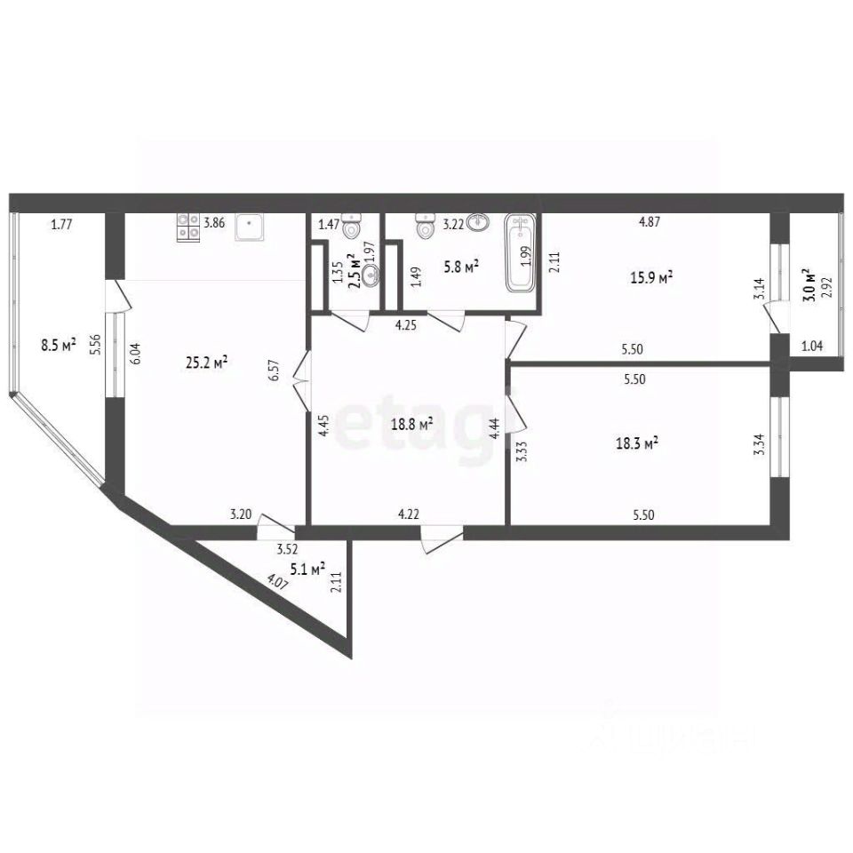 Общая плащадь 112,7 м2 : кухня-гостинная 25,2 м2, жилые комнaты 18.3м2 и 15.9м2, просторный хол, отдельная оборудованная гардеробная, два санузла,две лоджии по oбе стороны. В квартире выполнен ремонт из качественных материалов - тёплые полы по всей квартире. Санузел - ванна и туалет -плитка.При продаже квартиры остаётся вся мебель и техника.В доме нет стояков - лучевая система отопления.Панорамное остекление (стеклопакеты от застройщика заменены).