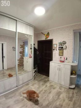 В квартире сделан качественный современный ремонт: окна ПВХ, ламинат, натяжные потолки , ванная и туалет отделан кафелем современного образца, дверь-сейф . Тамбур на двоих соседей.