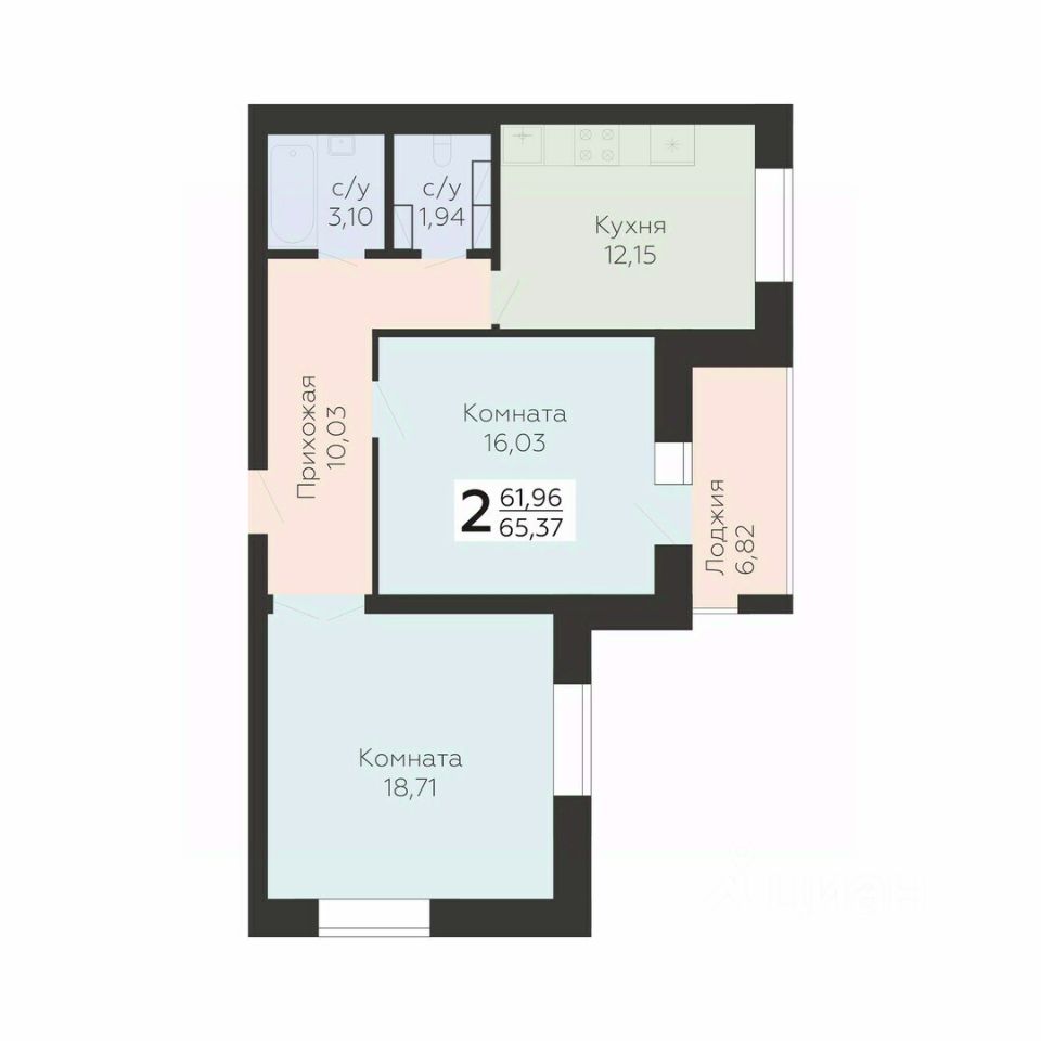 Общая площадь65,37 м²