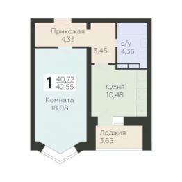 Общая площадь42,55 м²