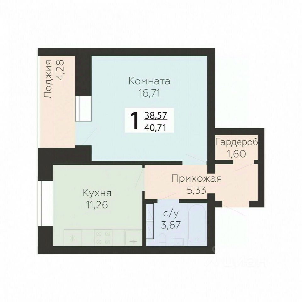 Общая площадь40,71 м²