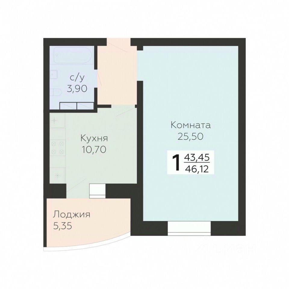 Общая площадь46,12 м²