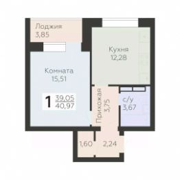 Общая площадь40,97 м²