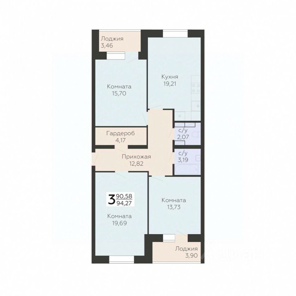 Общая площадь94,27 м²