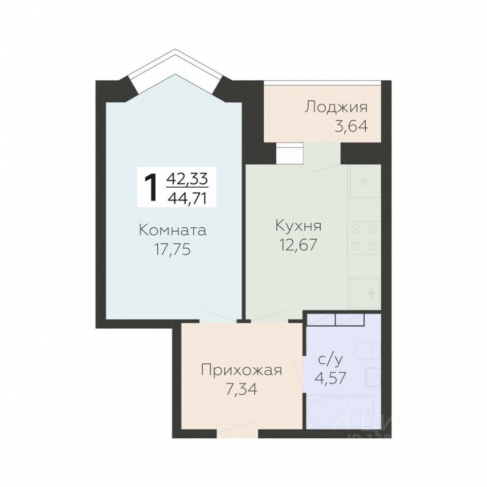 Общая площадь44,71 м²
