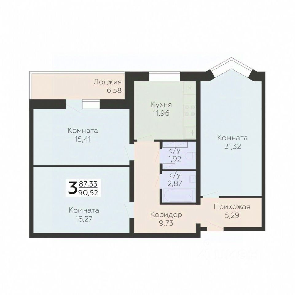 Общая площадь90,52 м²