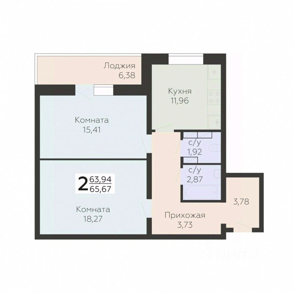 Общая площадь65,67 м²