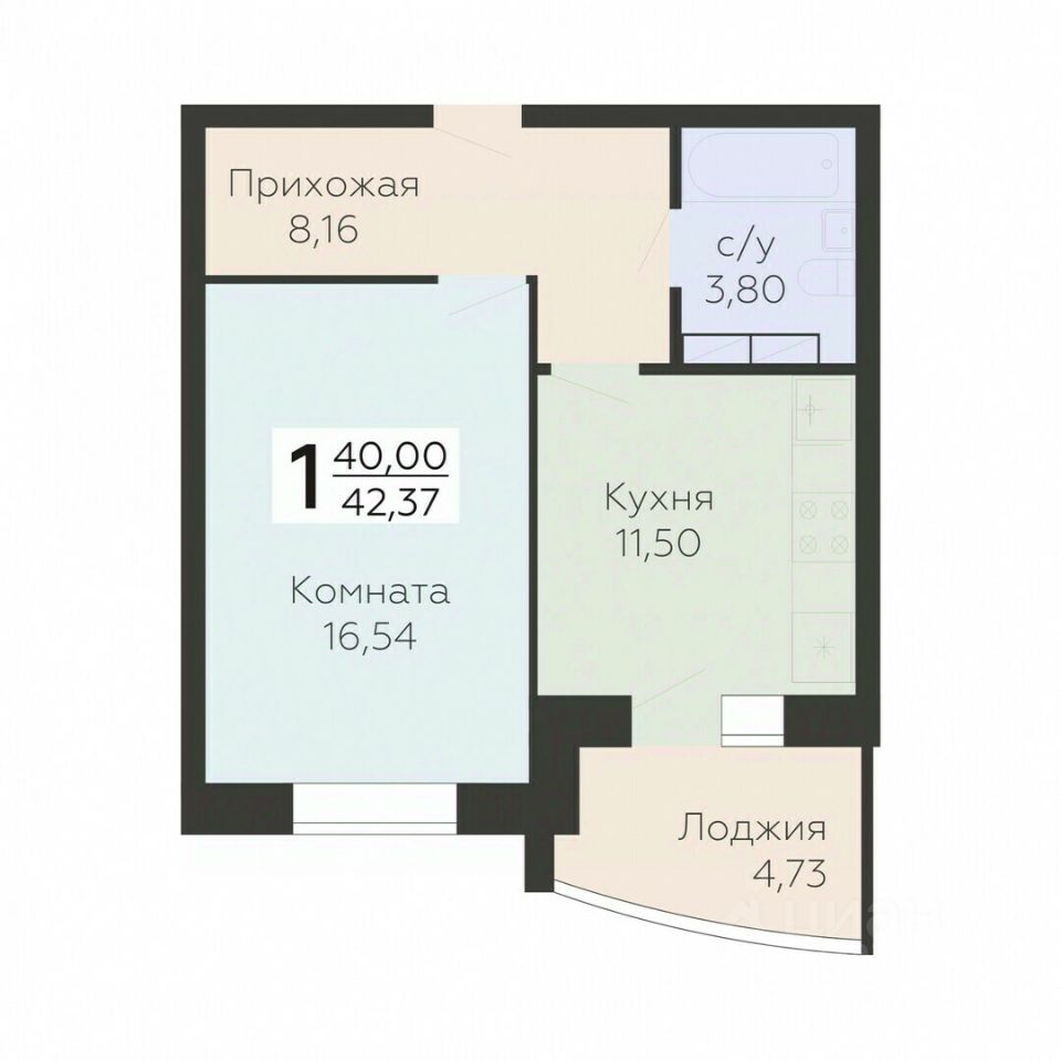 Общая площадь42,37 м²