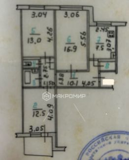 Арт. 129909844 В продаже теплая светлая 3-х комнатная квартира с ремонтом площадью 66 м² в Советском районе! Жилая площадь 42.4 м² (17+12.5+13), имеется кладовая!