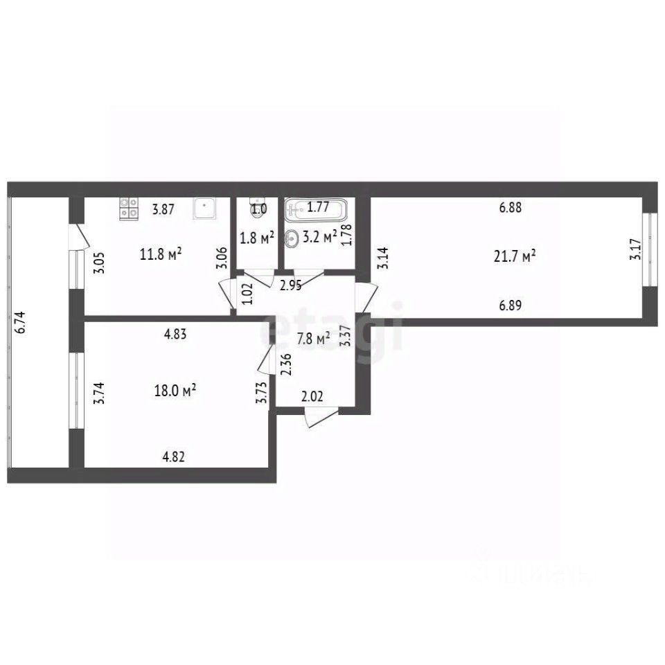 Продается просторная двух комнатная квартира в кирпичном доме ,2016 года постройки.