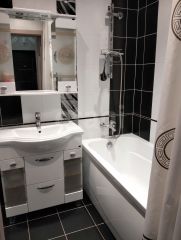В квартире выполнен качественный ремонт с удобными дизайнерскими решениями.