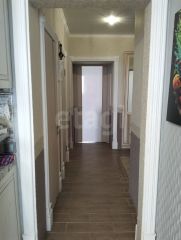 В коридоре и кухне пол выложен плиткой. В остальных комнатах ламинат.