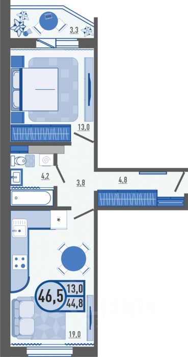 Продаётся 1-комнатная квартира в сданном доме (1 этап (поз.68)), срок сдачи: IV-кв. 2025, общей площадью 46.5 кв.м., на 7 этаже. С одной стороны жилой комплекс погрузит вас в тихую размеренную атмосферу, а с другой даст возможность насладиться динамичностью квартала со всей его развитой образовательной инфраструктурой.