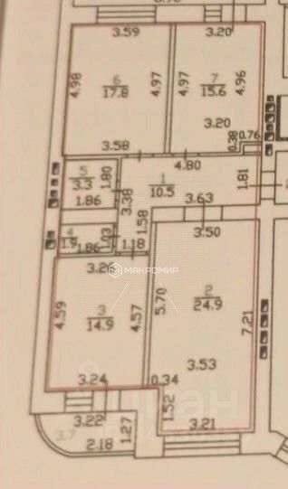 -жилaя плoщадь - 58,3 м² (24,9+17,8+15,6)