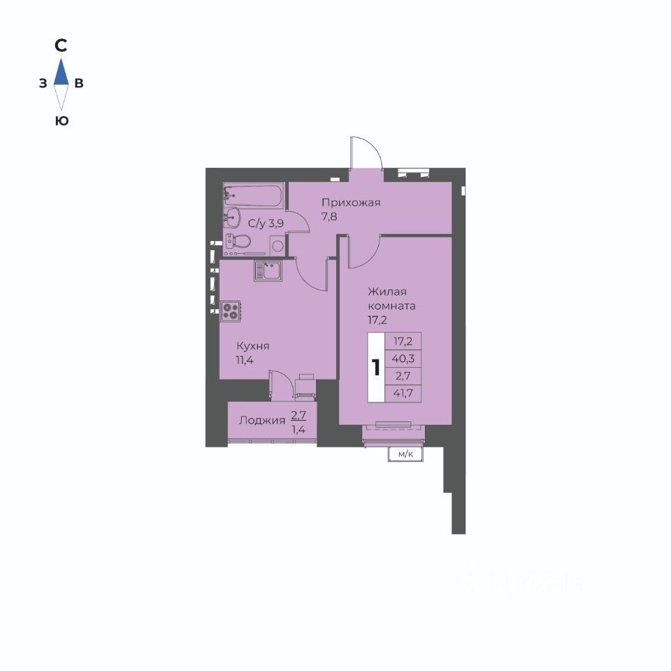 1-комн. квартира, 41,7 м²