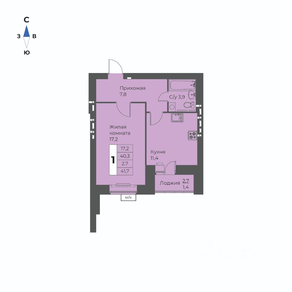 Общая площадь41,7 м²