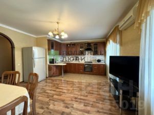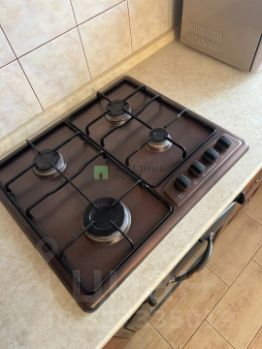 В кухне-гостинной установлен стильный кухонный гарнитур, выполненный на заказ из качественных материалов. Установлена практически новая газовая плита и вытяжка, а так же духовой шкаф. Так же имеется холодильник, кофеварка, микроволновка. В стену вмонтирован кондиционер. Имеется застекленная лоджия.