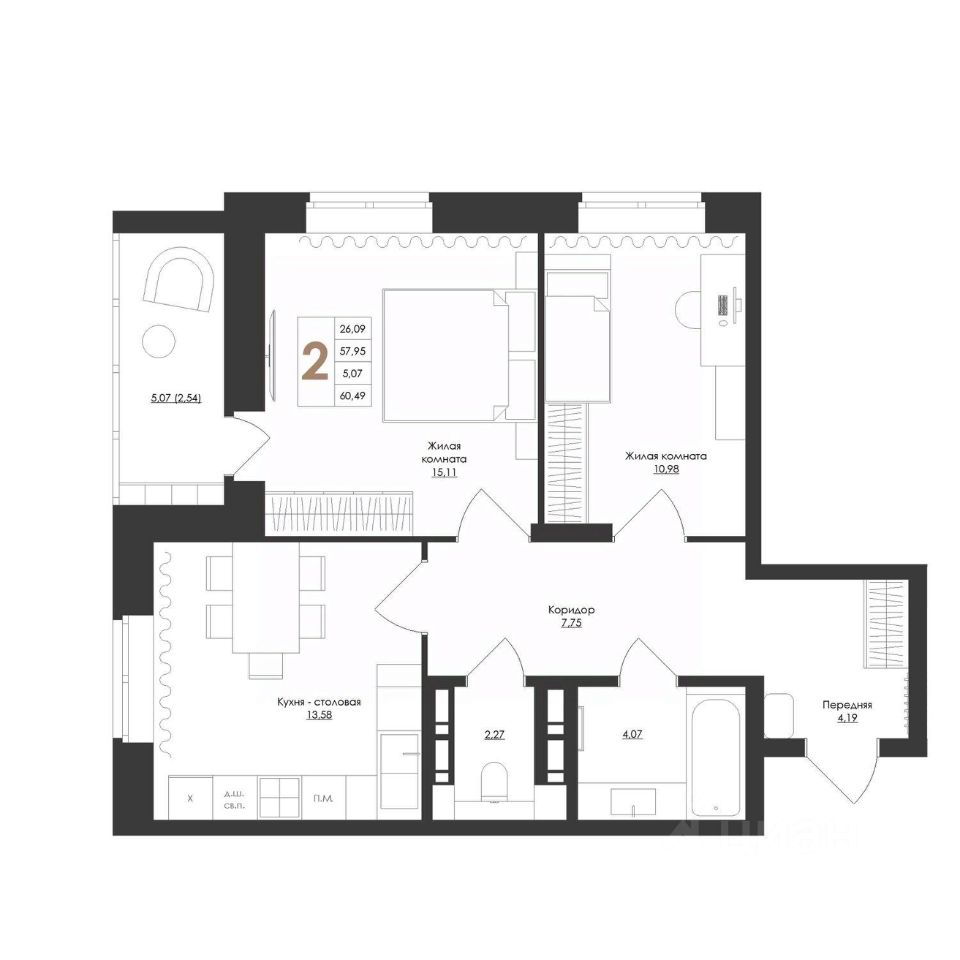 Уютная двухкомнатная квартира в ЖК "Лидер" с отделкой. Спроектирована с учетом самых современных технологий и требований к комфорту. Просторные планировки, высококачественные материалы, панорамные окна, большие балконы и виды на живописные окрестности — все это создает атмосферу уютного и благополучного жилья