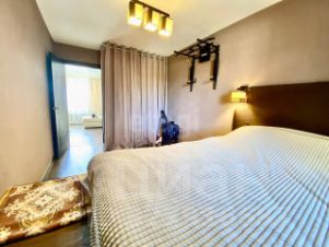 Квартира имеет смежные и раздельные комнаты, три лоджии. Санузел раздельный, выложен кафелем. На кухне и в коридоре линолеум, в остальных комнатах ламинат. Потолки натяжные и гипсокартон. Окна ПВХ.