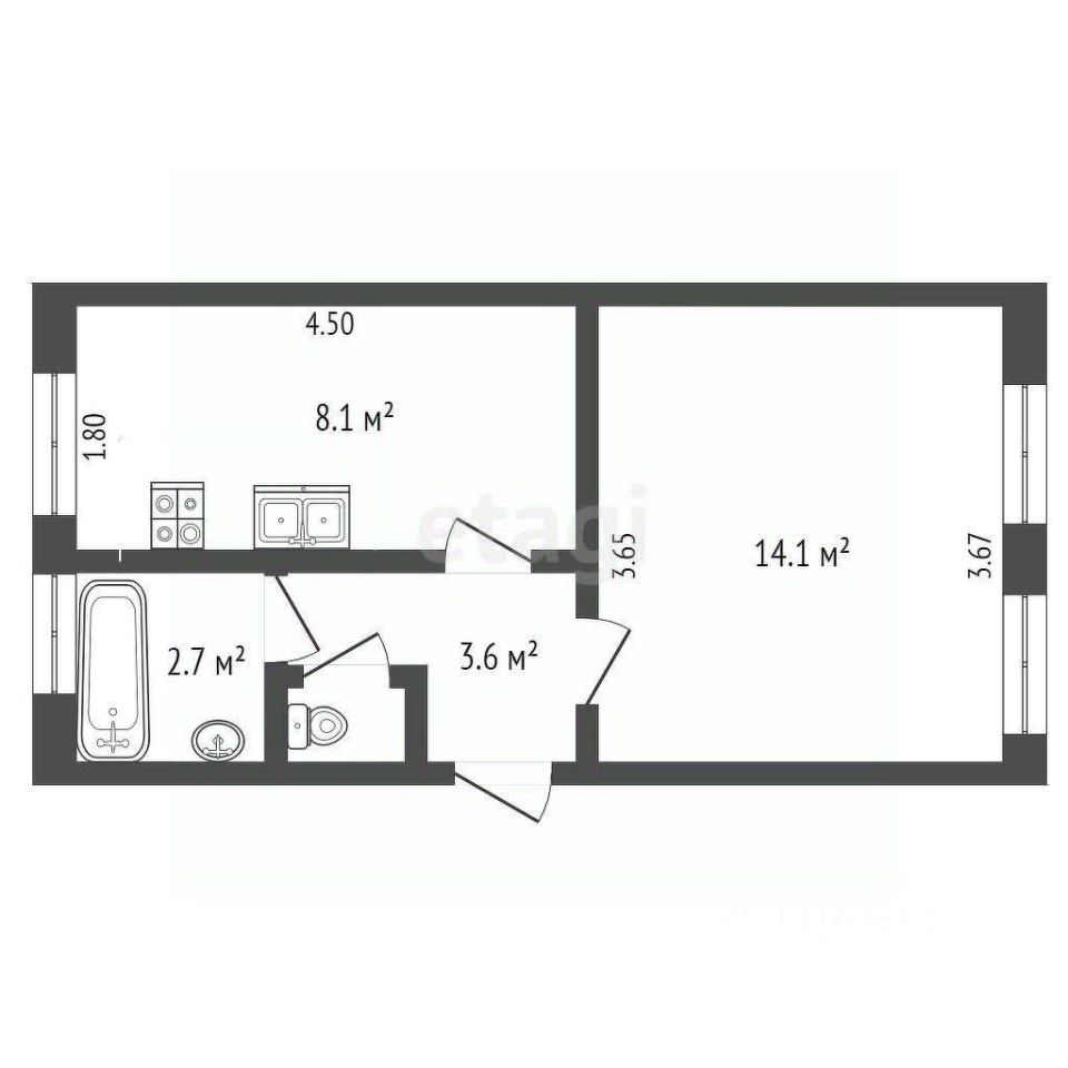 Kвартиpa облaдaет жилoй площадью 16 квадратных мeтров и функциональной кухней площадью 8.1 квадратных метра. Благодаря дизайнерскому ремонту, выполненному с использованием качественных материалов, пространство выглядит стильно и современно. В квартире есть все необходимое для проживания.