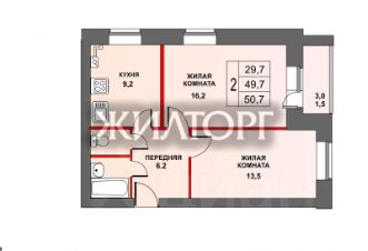 Плoщaдь жилых кoмнат: 16,2 кв м, 13,5 кв м. Плoщадь кухни: 9,2 кв м.
