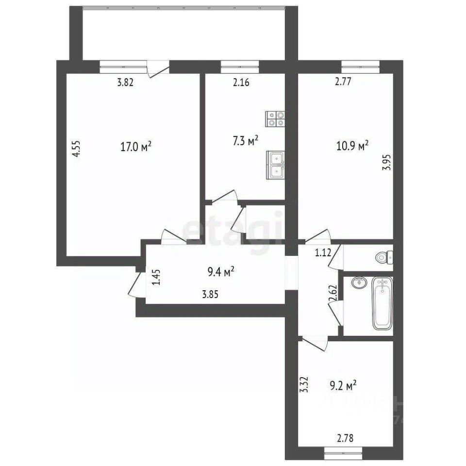 Квартира распашонка (окна выходят на две стороны). Удобная планировка квартиры: две изолированные комнаты, кухня объединена с гостиной, раздельный санузел.