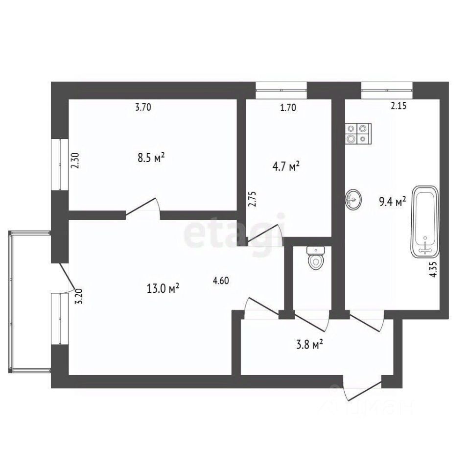 9,4 м²