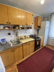 Квартира теплая, уютная, с удачной планировкой на 3 этаже. Большая кухня 8 кв м, комнаты по 16 и 11,5 кв м, огромная лоджия 8 кв м . Ремонт косметика санузел в плитке, окна ПВХ, линолеум. Центральное отопление и вода, газ. Часть окон выходит на солнечную сторону.
