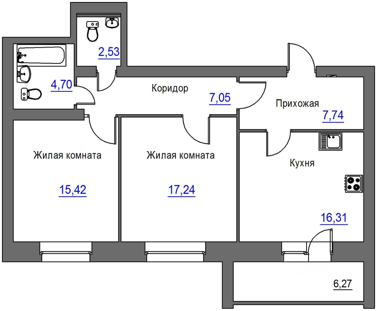 Продается 2-комн. квартира, 74,13 м²