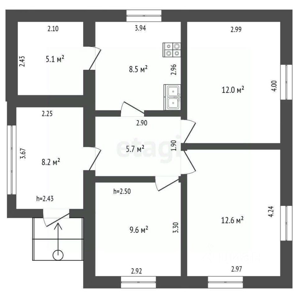 53,5 м²