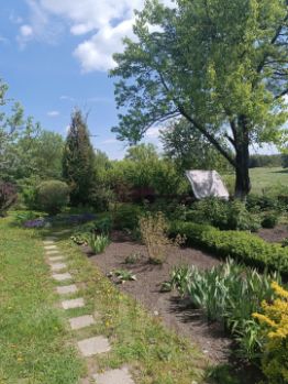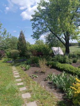 разбит на сад и огород. В саду плодоносящие деревья, цветник, лавочка, качели. Огород ухожен. Есть две теплицы. Отличный вариант для тех кто любит выращивать свои овощи и фрукты и радовать родных вкусным вареньем и хрустящими огурчиками.