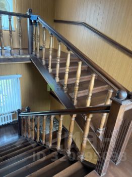 Лестница с широкими ступенями из массива придает дому особый шарм и уют.