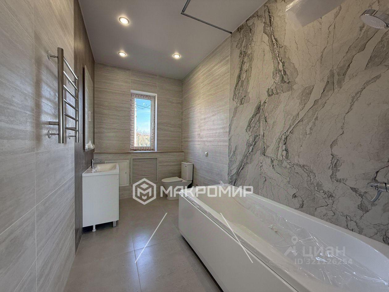 Внутренние стены выровненные, готовы под обои. Высота потолков 3 м. Установлены натяжные потолки и точечное освещение. Ванная комната сделана под ключ. Окна двухкамерные. Пол стяжка. Отопление: система теплых полов по всему дому (кроме 3х комнат) + радиаторы по всему дому. Выполнена разводка труб и электрики, установлены розетки и выключатели.