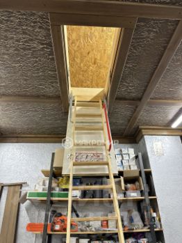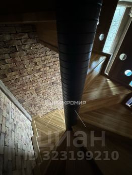 Лестница на второй этаж винтовая из массива дуба, стены искусственный камень.