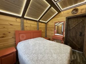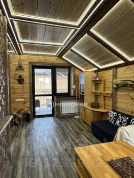 Гостевой дом состоит из двух этажей и цоколя. Облицовочный кирпич + утеплитель 10мм+1,5 красного тульского кирпича. Перекрытия монолит. Кровля мягкая технониколь 4-х слойна, отливы по всему периметру дома, водосток. Окна во всем доме Rehau. Отопление электричеством, теплые полы керамогранит Kerama Marazzi. Стены отделка блок хаус (Архангельская сосна) с деревянной расшивкой. Потолки дерево блок хаус, обработанные немецкой пропиткой. Столешница сделана из камня, индукционная плита, вытяжка, встроенный холодильник и стерильная машина, установлен аквалор-фильтр очистка для питьевой воды, стол деревянный массив сосны. Кожаный диван. На кухне встроенная дровяная печь для подогрева камней в парилке.