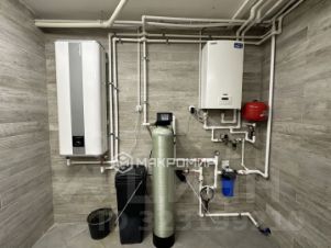 Цоколь площадью 33кв.м, плитка керамогранит Kerama Marazzi. В цоколе установлена соляная систем водоочистки, бойлер горячей воды Atlantic, электрический котел ЭВАН. Потолки алюминиевые панели. Цоколь отапливается электричеством. В цоколе котельная и два подсобных помещения.