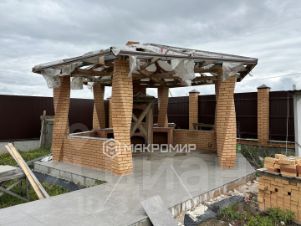 В беседке мангальная зона построена из белорусского кирпича. Пол керамогранит.