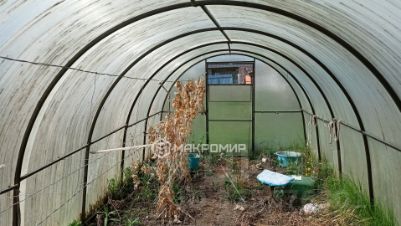 Прочная теплица и кирпичный туалет, летний душ, оборудовано место для парковки авто.