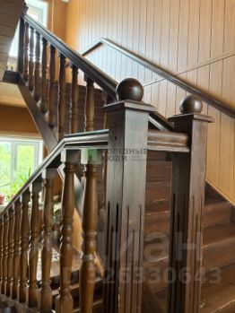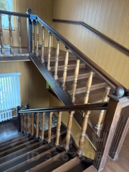 Лестница с широкими ступенями из массива придает дому особый шарм и уют.