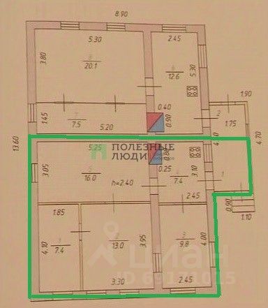 Площадь продаваемой части дома 53,6 кв.м.